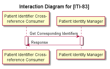 The Mobile Patient Identifier Cross-reference Query is used by an app in the Swiss EPR to query with the local identifier the MPI and get the corresponding MPI-PID and the EPR-SPID identifier for the patient.